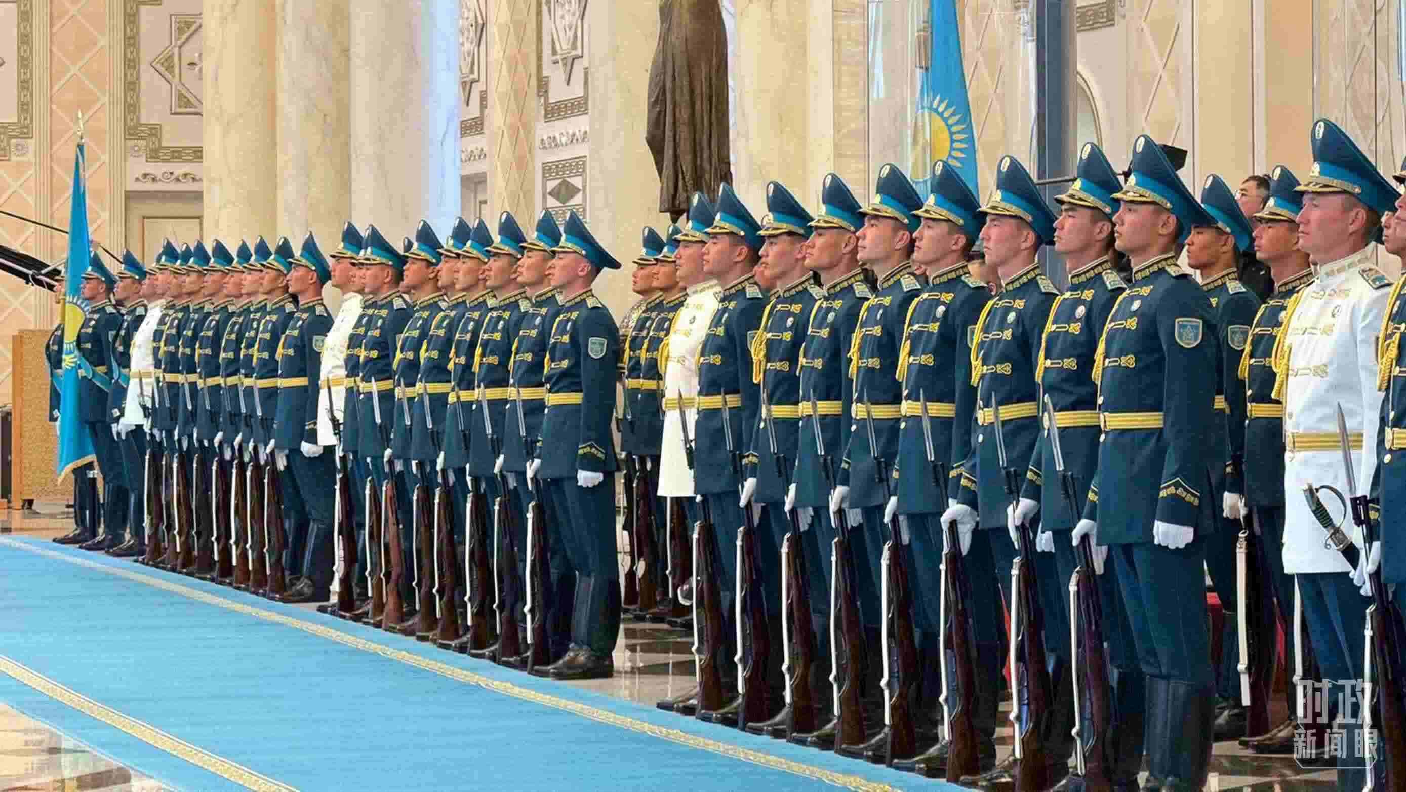 △哈薩克斯坦以最高禮儀歡迎習(xí)近平主席。(總臺央視記者張洛嘉拍攝)