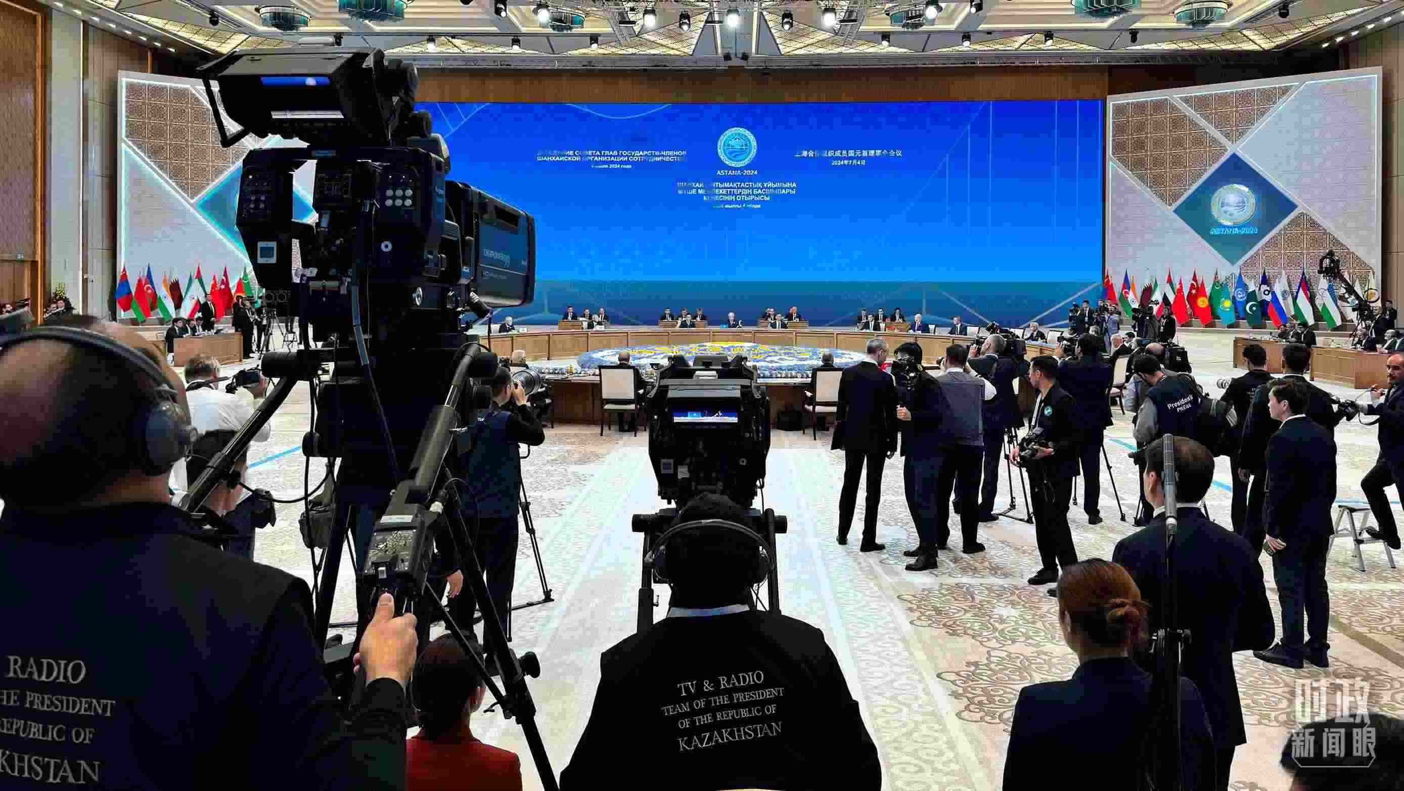 △當(dāng)天下午,“上海合作組織+”阿斯塔納峰會(huì)在這里舉行,這是會(huì)議開始前。(總臺(tái)央視記者石丞拍攝)