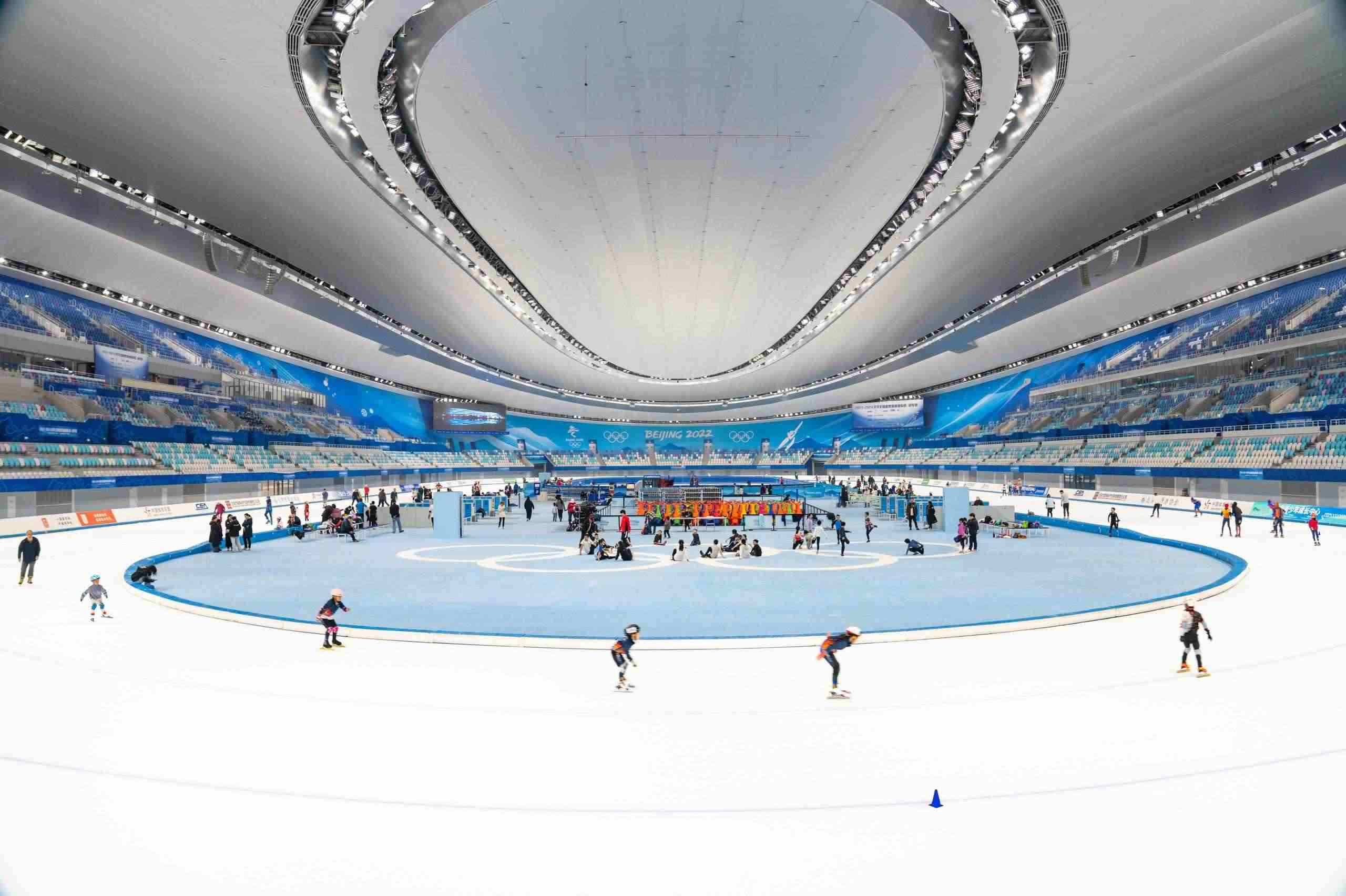 △2024年4月27日,滑冰愛好者和市民在北京國家速滑館參加滑冰運(yùn)動(dòng)。