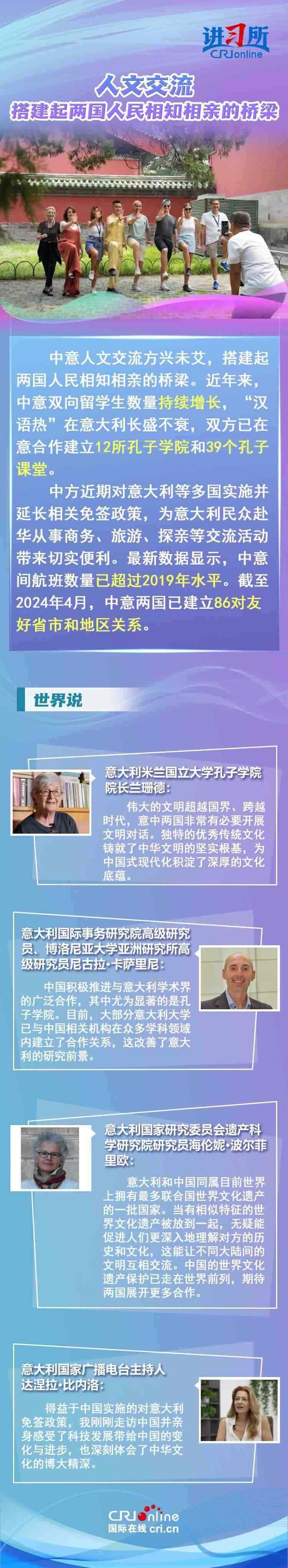 梅洛尼表示,中國對意大利而言是一個極為重要的經(jīng)貿(mào)和文化合作伙伴。意大利各界人士認為,中意并肩同行會創(chuàng)造更多的經(jīng)濟奇跡,同時兩國非常有必要開展文明對話,期待未來兩國展開更多領域合作,開啟全面戰(zhàn)略伙伴關系新階段。