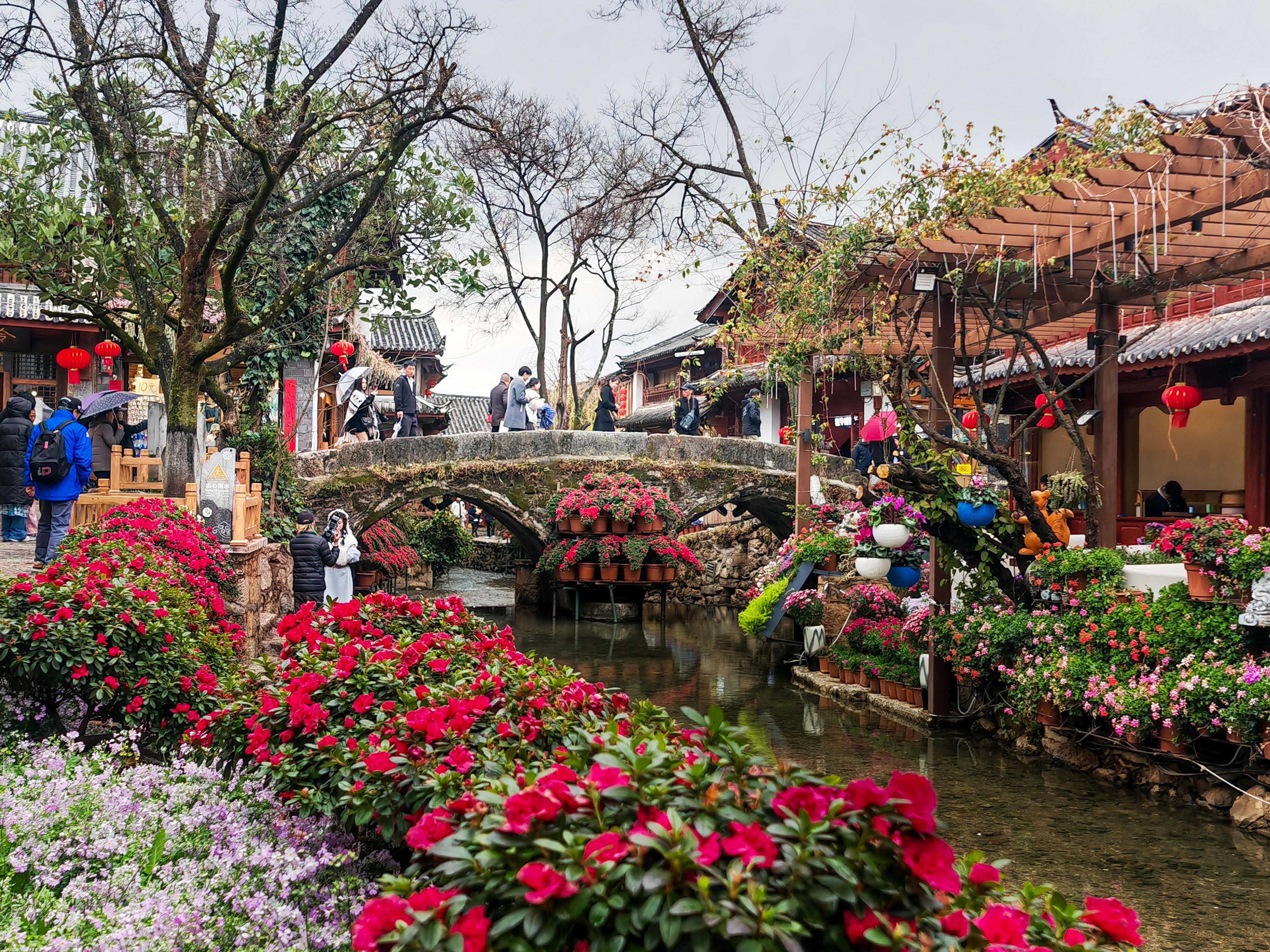 △麗江古城內(nèi)百橋千巷,清流繞坊。(總臺(tái)央廣記者馬喆拍攝)