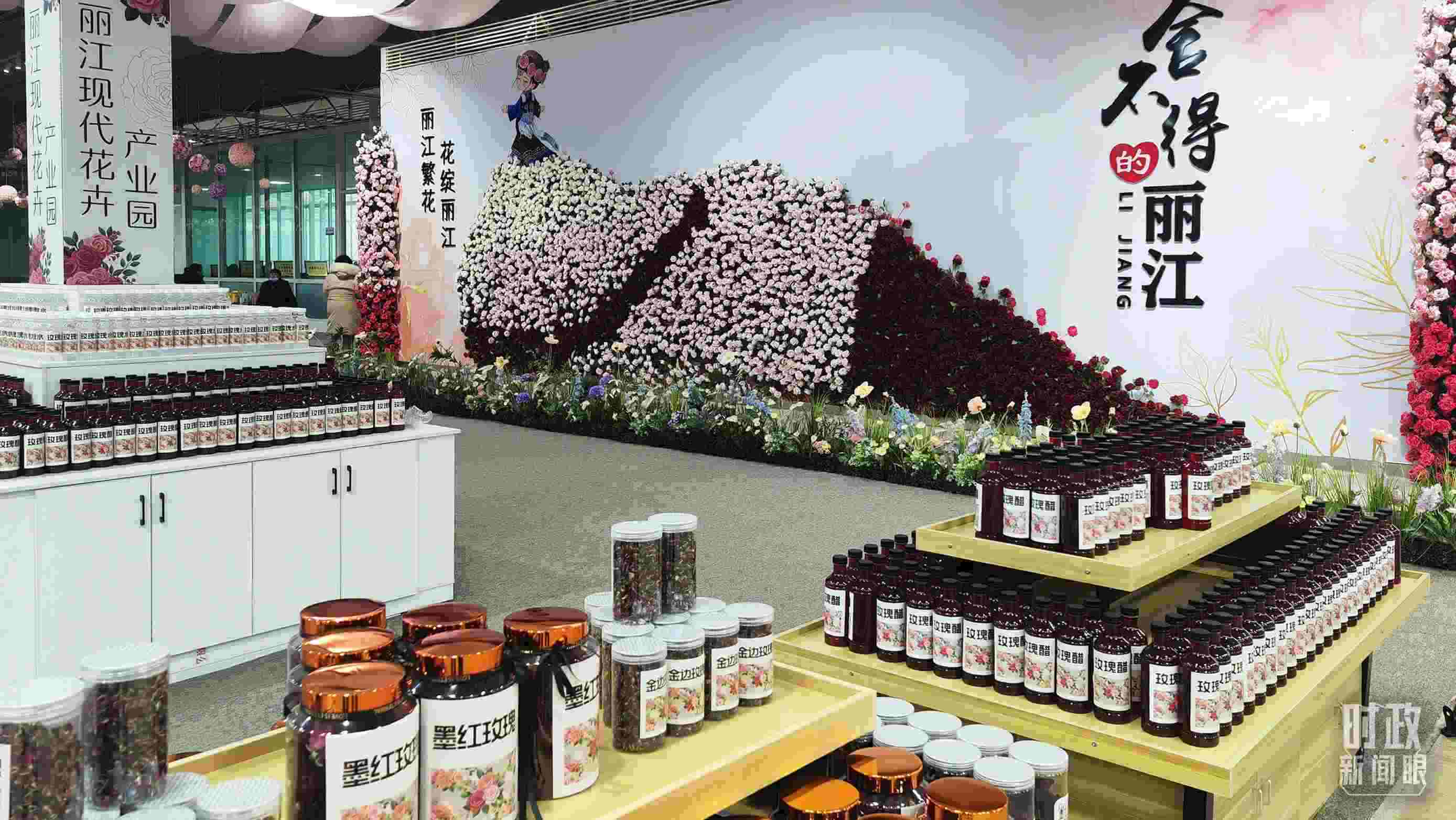 △展廳里展示的各種鮮花制品。(總臺央廣記者馬喆拍攝)