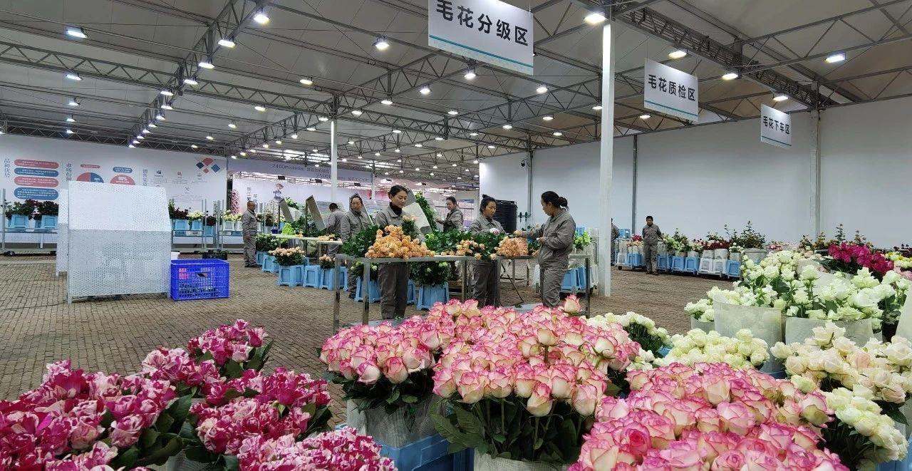△云南麗江現(xiàn)代花卉產(chǎn)業(yè)園內(nèi),工人正在分類整理鮮花。