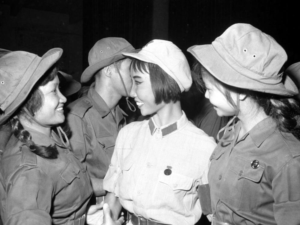 1967年6月30日,越南南方解放軍歌舞團(tuán)的演員在北京觀看芭蕾舞劇《紅色娘子軍》。這是中越兩國演員在一起交談。