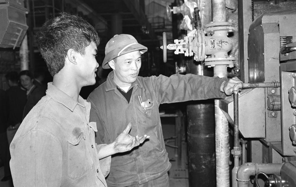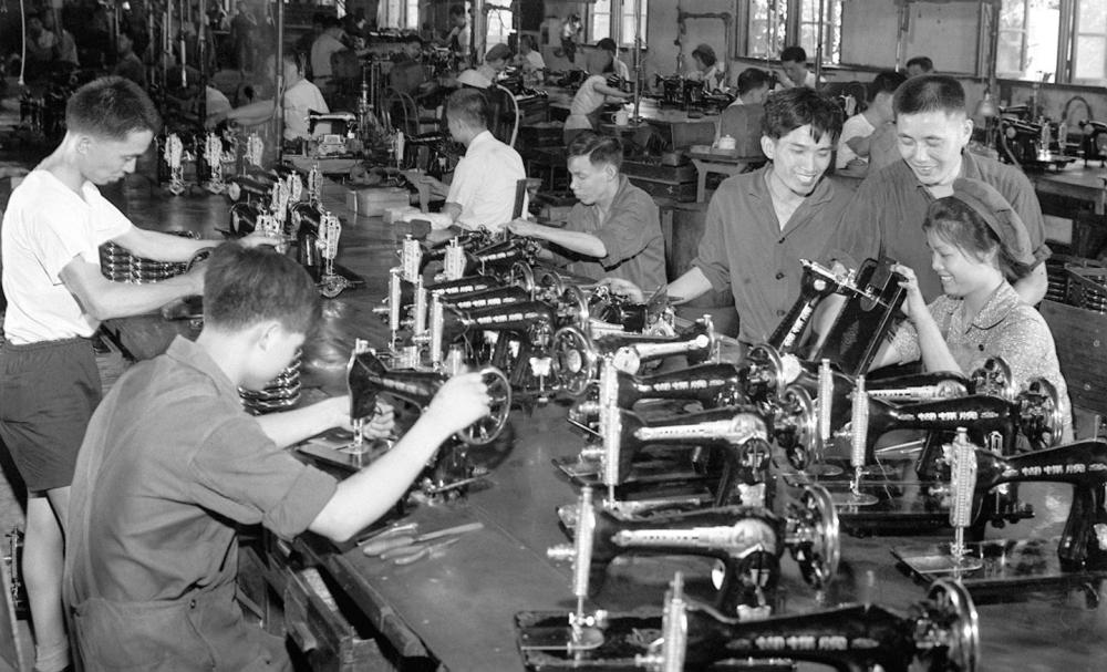 1970年,越南實習(xí)生在上海東方紅縫紉機(jī)廠學(xué)習(xí)裝配技術(shù)。