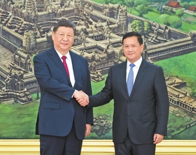 本報金邊4月17日電 (記者李婕、白元琪)4月17日晚,國家主席習近平同柬埔寨首相洪瑪奈在金邊和平大廈舉行會談。兩國領(lǐng)導人一致同意攜手構(gòu)建新時代全天候中柬命運共同體,宣布2025年為“中柬旅游年”。