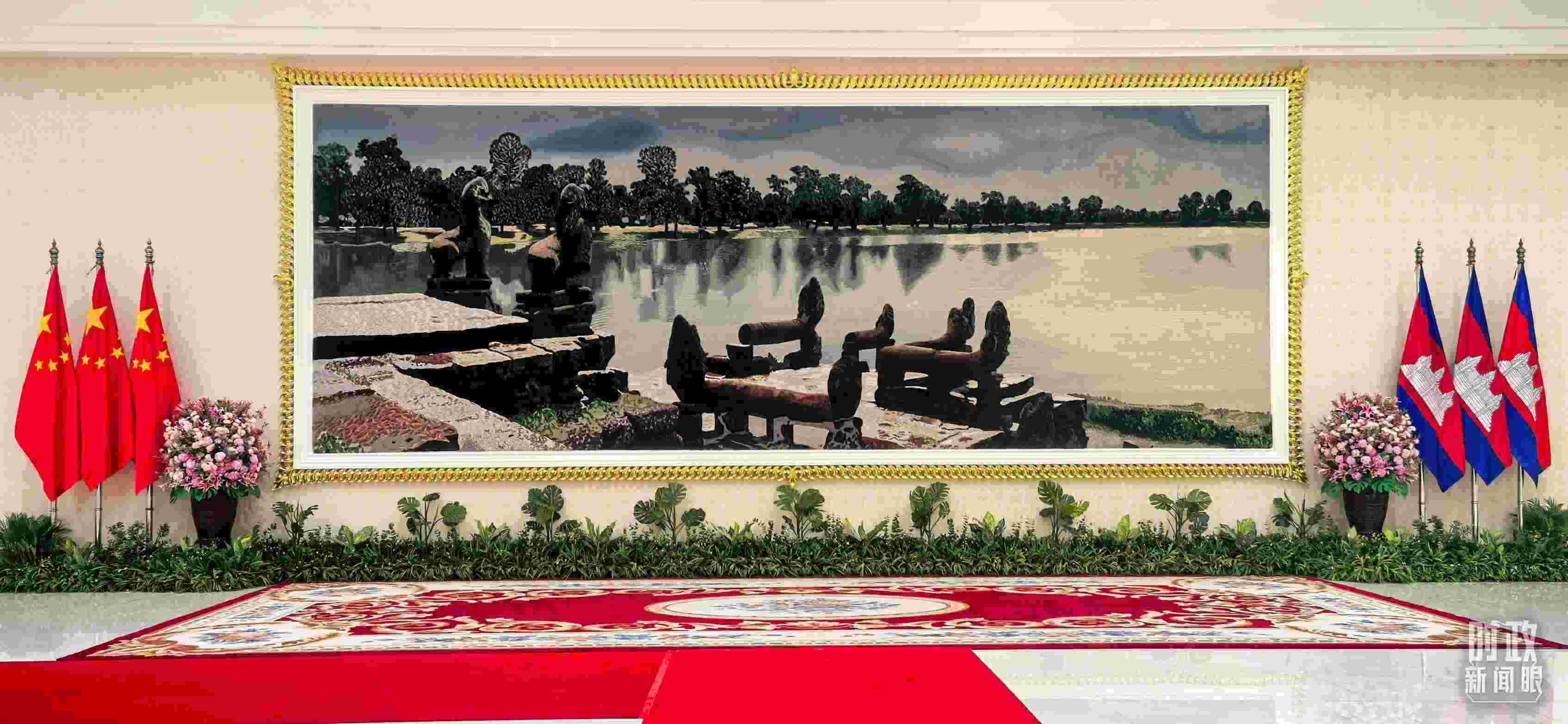 △習主席會見洪森前的合影現(xiàn)場。(總臺央視記者范凱拍攝)