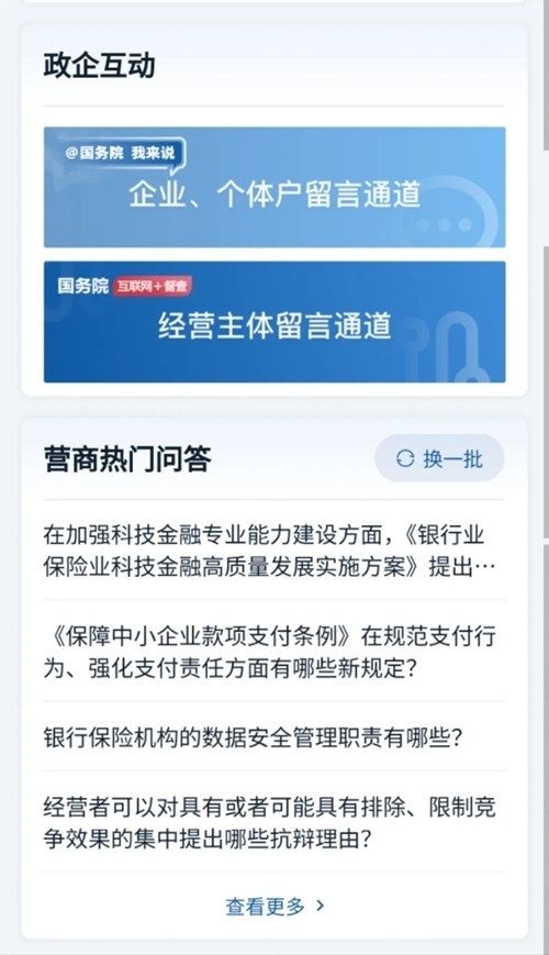 還有“政企互動(dòng)”和“營(yíng)商熱門問(wèn)答”,