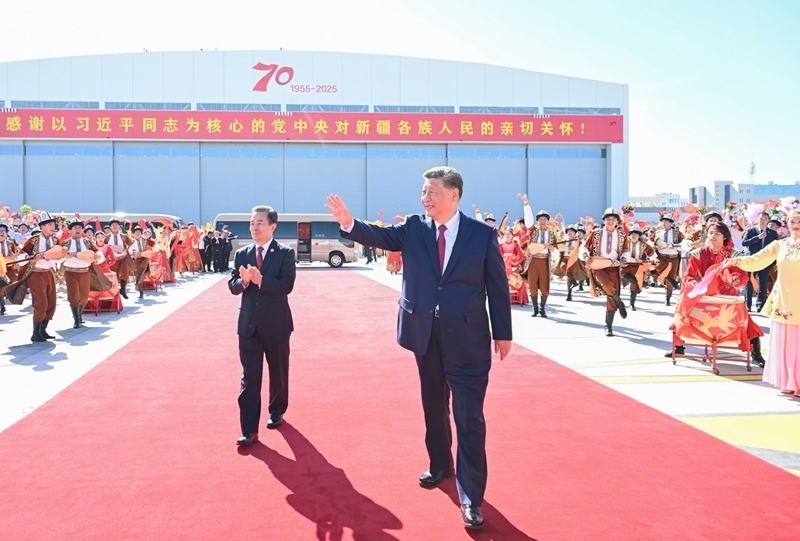 25日中午,習(xí)近平總書(shū)記在烏魯木齊出席新疆維吾爾自治區(qū)成立70周年慶?;顒?dòng)后,乘專(zhuān)機(jī)返回北京。在烏魯木齊市區(qū)和機(jī)場(chǎng),新疆各族群眾熱情歡送總書(shū)記。(文字記者:張曉松、朱基釵;攝影記者:謝環(huán)馳、申宏、李琰)