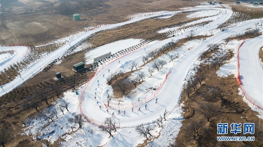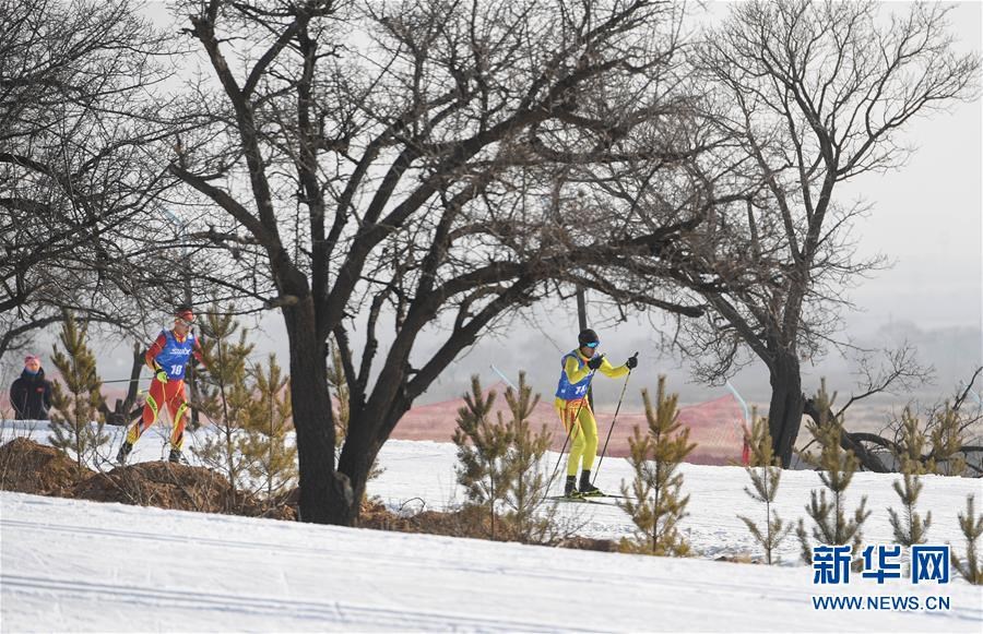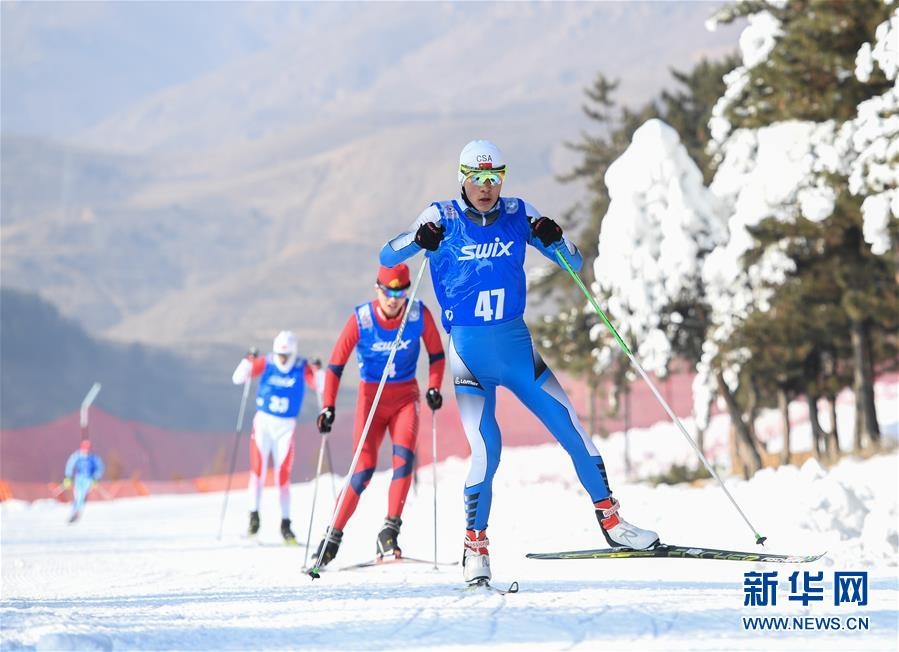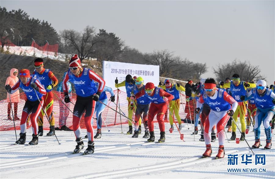 1月11日至1月15日,2018-2019年度全國青少年越野滑雪錦標賽在內(nèi)蒙古烏蘭察布市涼城縣岱?;﹫雠e行。這是選手在青年組男子30公里集體出發(fā)(自由技術(shù))比賽中(1月12日攝)。新華社記者彭源攝