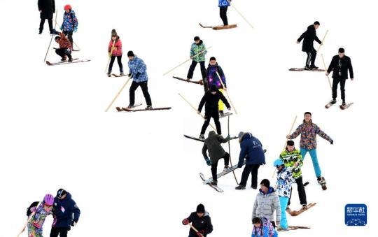 這是人們在阿勒泰市將軍山滑雪場參加毛皮滑雪慶祝活動(2019年1月16日攝)。新華社記者 沙達(dá)提 攝