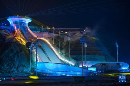 這是位于河北省張家口市崇禮區(qū)的國家跳臺滑雪中心“雪如意”點亮效果(無人機(jī)照片,2020年12月19日攝)。新華社發(fā)