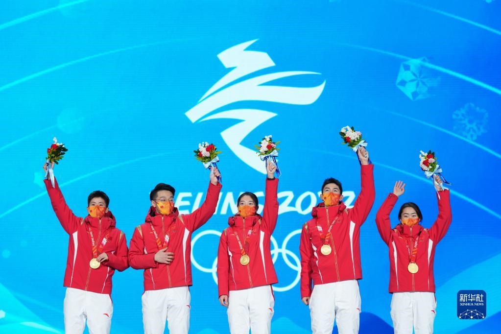 當(dāng)日,北京2022年冬奧會短道速滑混合團(tuán)體接力獎牌頒發(fā)儀式在北京賽區(qū)頒獎廣場舉行。