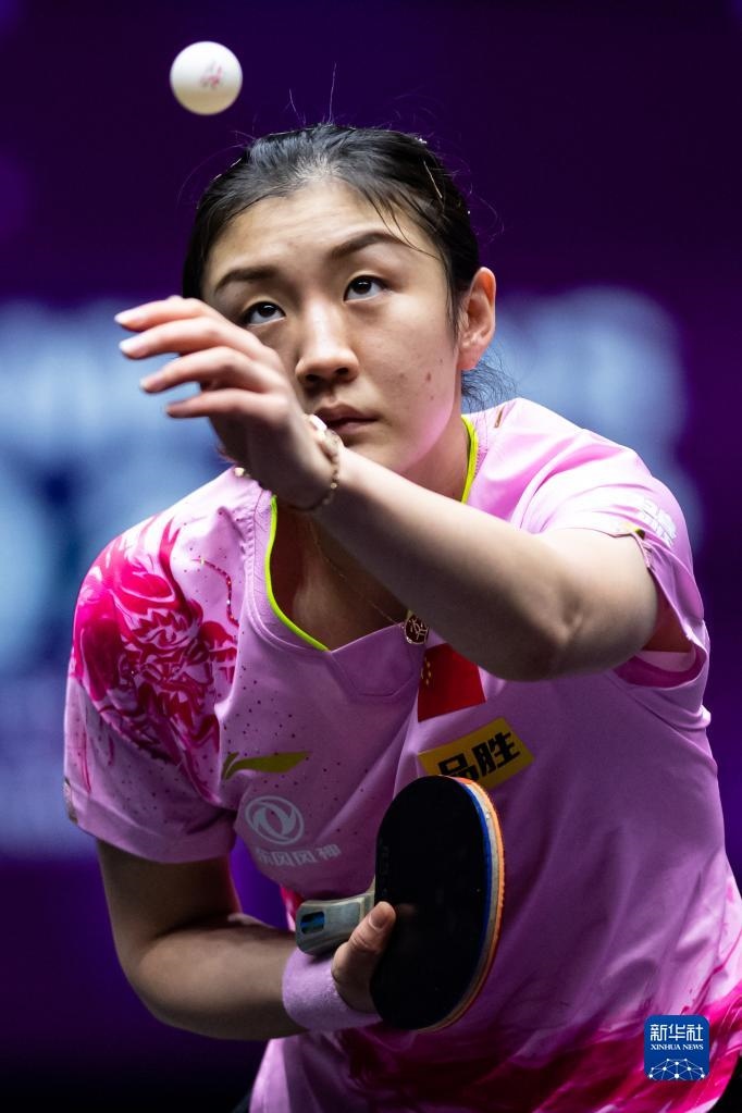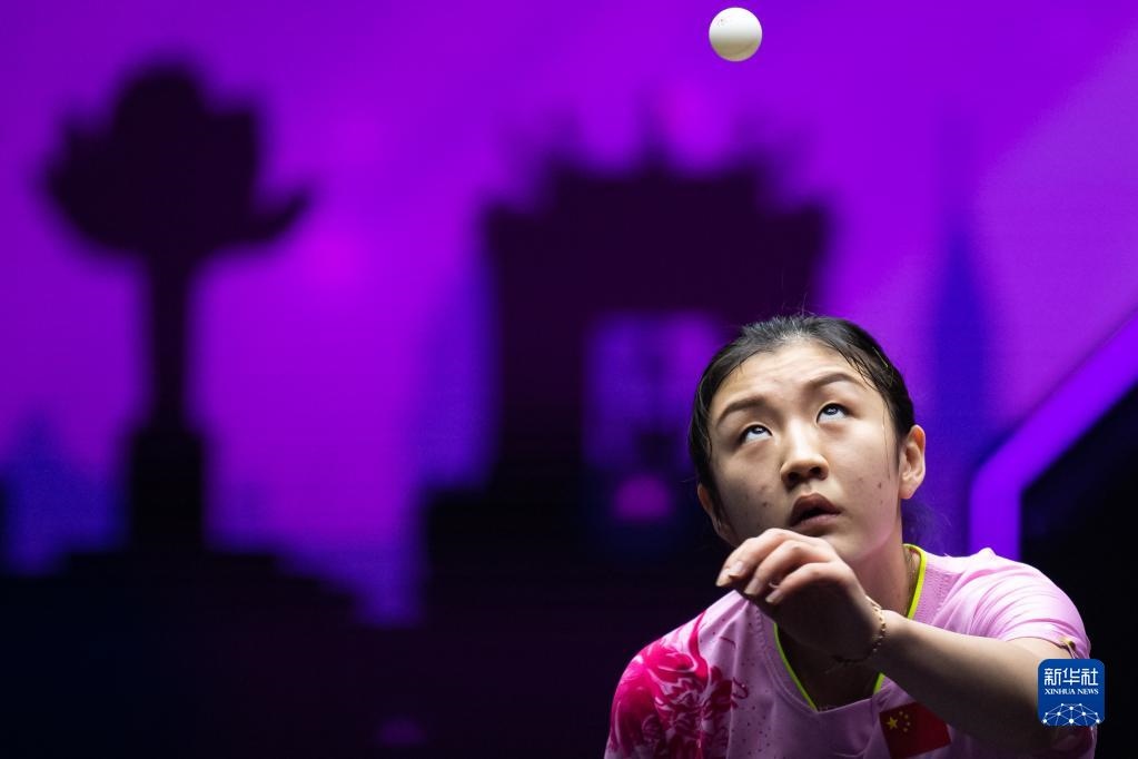 10月19日,陳夢在比賽中回球。新華社記者 張金加 攝