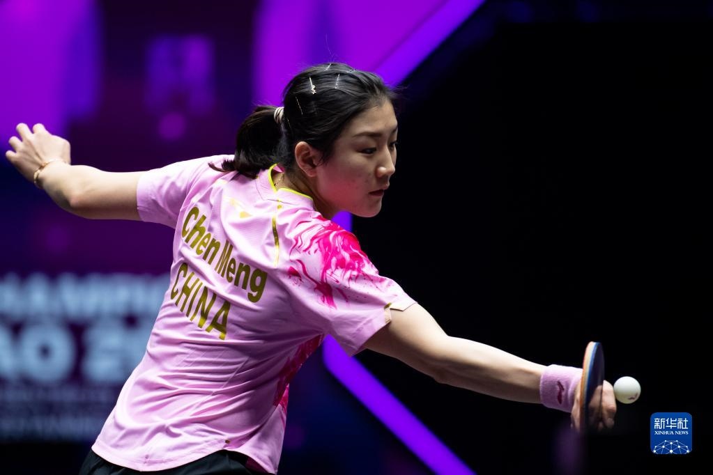 當(dāng)日,在澳門塔石體育館進(jìn)行的2022年WTT澳門冠軍賽女子單打首輪比賽中,中國選手陳夢以3比0戰(zhàn)勝葡萄牙選手付玉,晉級(jí)下一輪。