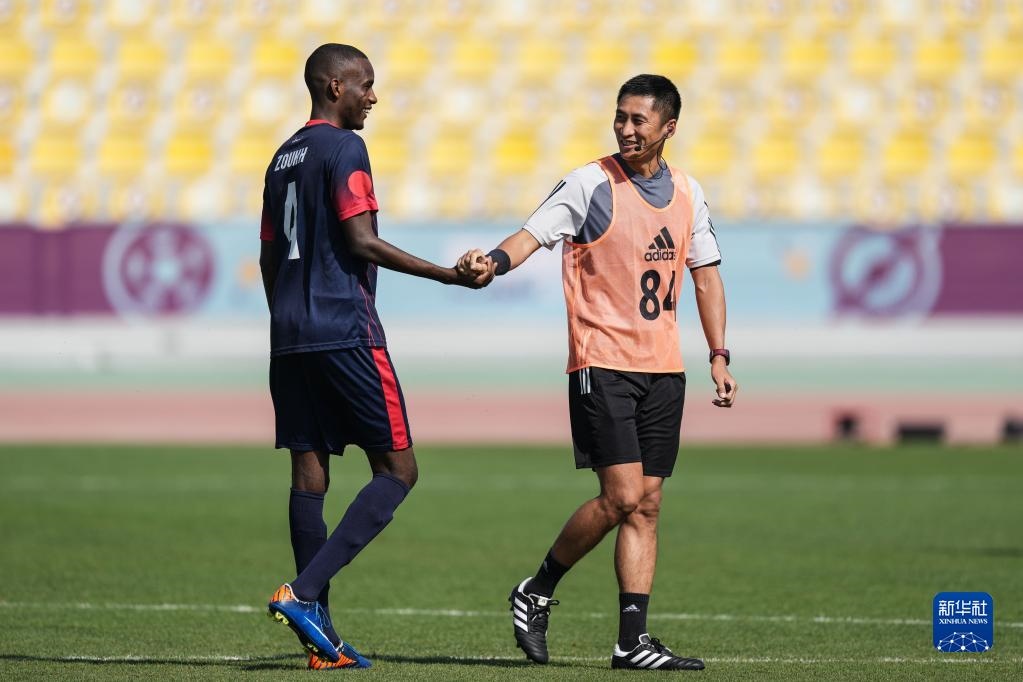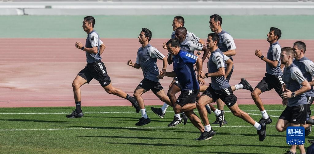 當(dāng)日,入選2022年卡塔爾世界杯裁判員名單的中國(guó)裁判馬寧、曹奕與施翔在卡塔爾體育俱樂(lè)部球場(chǎng)進(jìn)行訓(xùn)練。