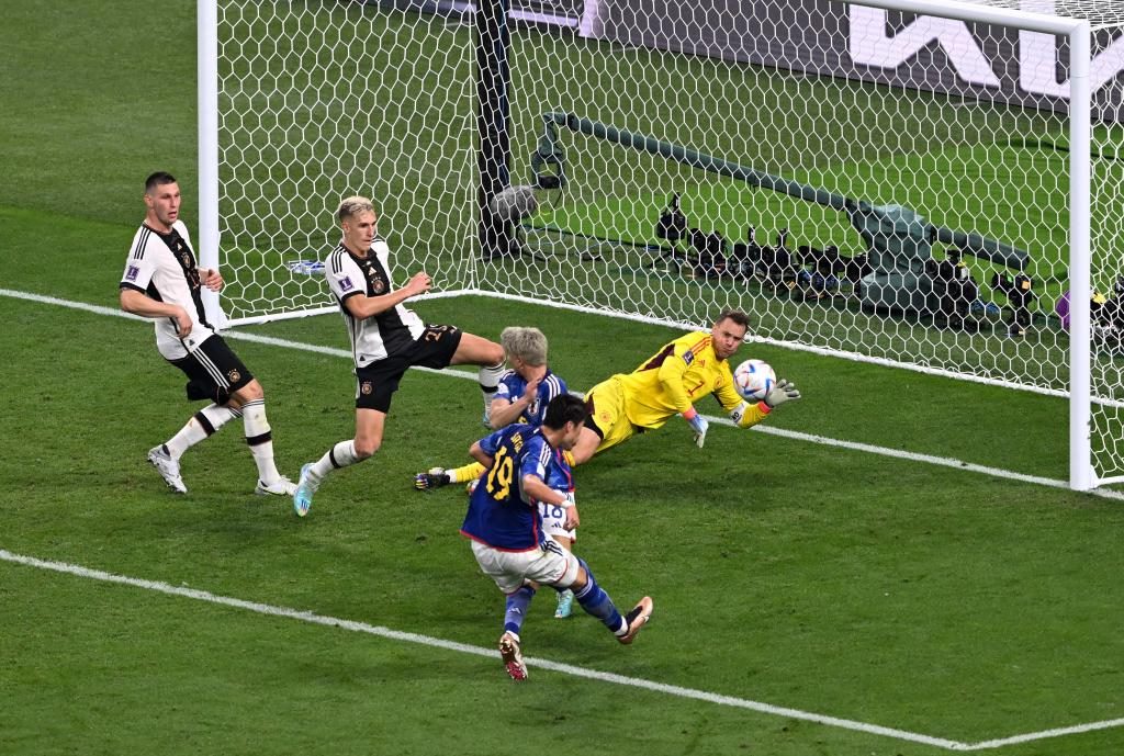 國際足聯(lián)此前規(guī)定,禁止球員在賽場做與政治相關(guān)的宣示和暗示。德國隊在賽前合影時,全隊做了捂住嘴的手勢,暗諷國際足聯(lián)“禁言”。當(dāng)?shù)聡襟w中場休息時還在為這個“小把戲”沾沾自喜時,日本隊已經(jīng)在醞釀冷峻的絕地反擊了。