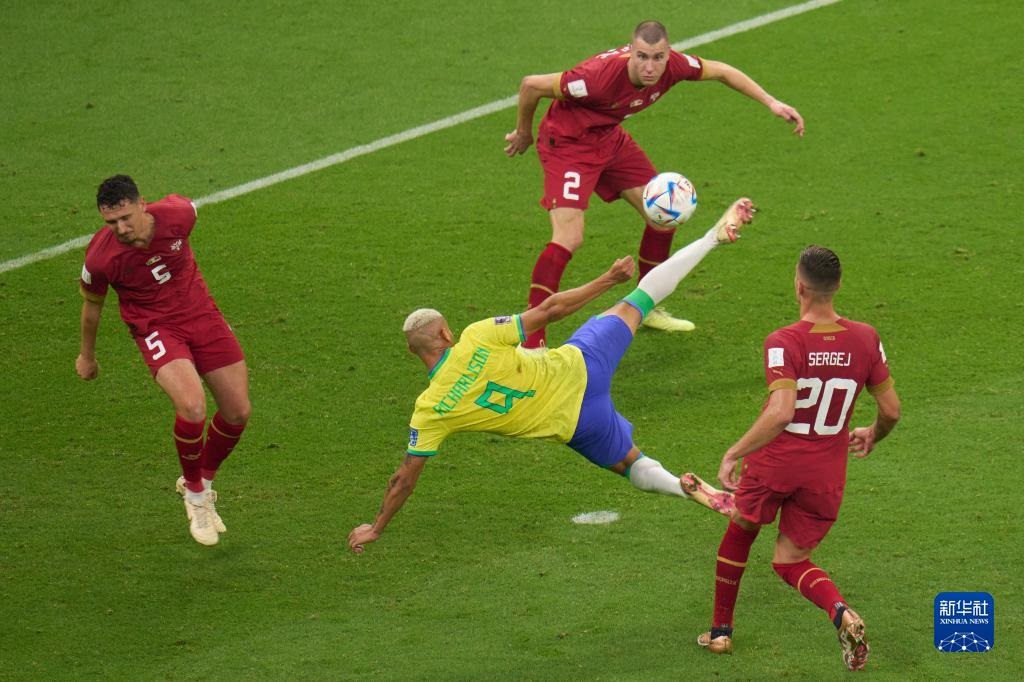 當(dāng)日,在卡塔爾盧賽爾球場(chǎng)進(jìn)行的2022卡塔爾世界杯足球賽G組比賽中,巴西隊(duì)以2比0戰(zhàn)勝塞爾維亞隊(duì)。