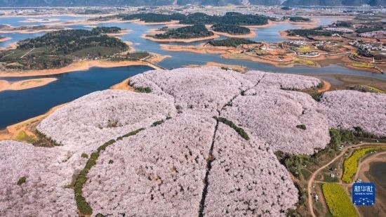 近日,貴州省貴安新區(qū)櫻花園內的2.4萬畝櫻花競相綻放,如雪似霞,吸引游客前來賞花觀光。