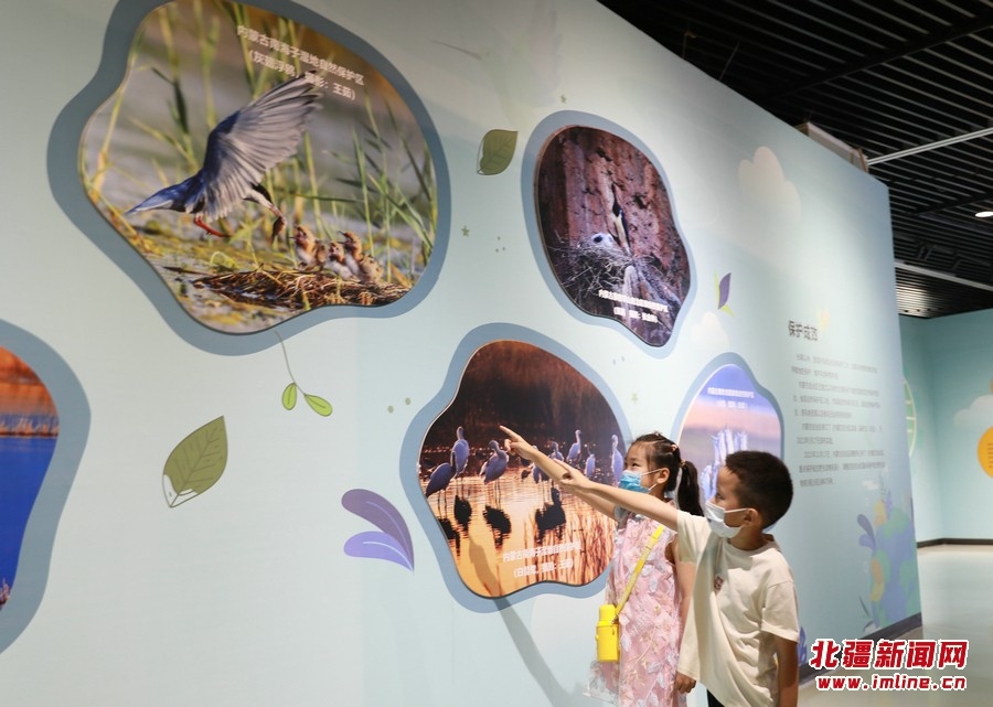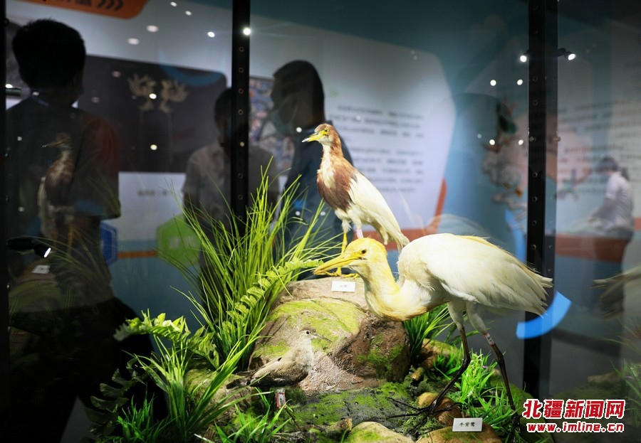 8月13日,參觀者在《振翅北疆》內(nèi)蒙古鳥類特展觀展