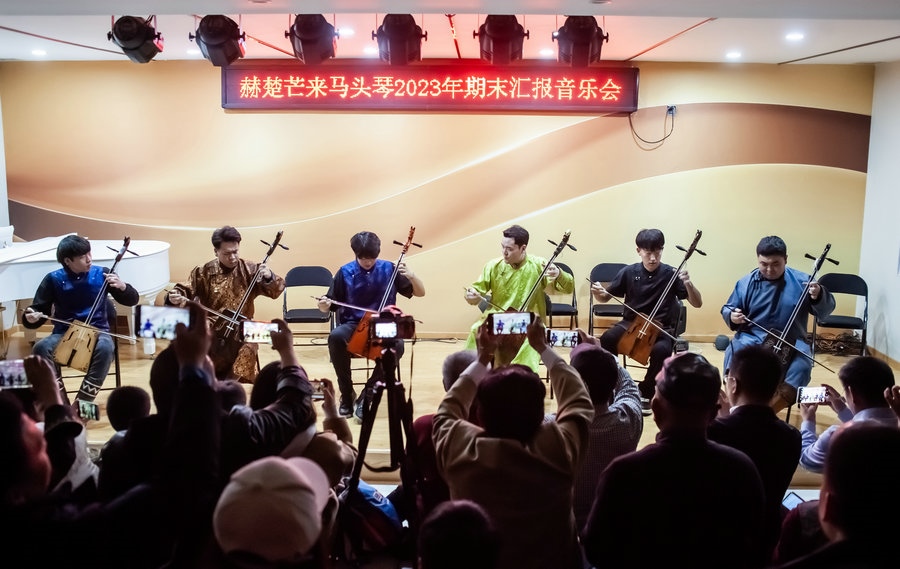 據(jù)了解,呼和浩特馬頭琴藝術(shù)綜合體,是由青年馬頭琴演奏家赫楚芒來(lái)發(fā)起成立的集青少年馬頭琴基礎(chǔ)培訓(xùn),成人馬頭琴演奏、馬頭琴師培訓(xùn)、馬頭琴大賽、馬頭琴展覽、藝考培訓(xùn)、馬頭琴直播等融為一體的馬頭琴藝術(shù)綜合體驗(yàn)機(jī)構(gòu)。內(nèi)蒙古民族文化藝術(shù)研究院非物質(zhì)文化遺產(chǎn)研究所經(jīng)組織相關(guān)專業(yè)學(xué)者考察考核后,上報(bào)研究院審核批準(zhǔn)呼和浩特馬頭琴藝術(shù)綜合體為內(nèi)蒙古非物質(zhì)文化遺產(chǎn)(馬頭琴)傳承基地。