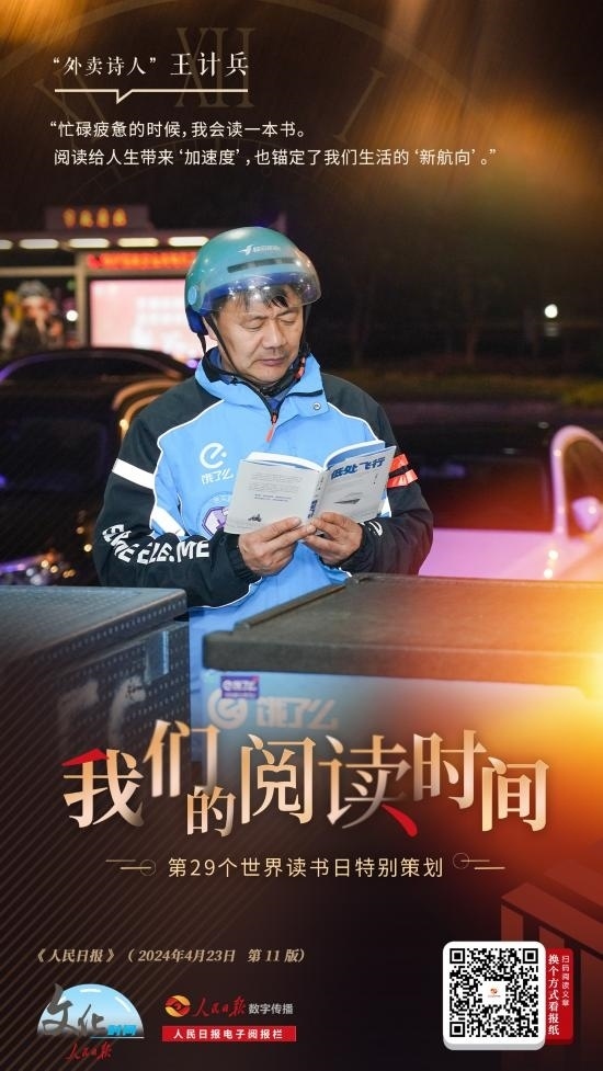 “我的外賣箱里總會放一本書,在等外賣的間隙或者訂單空閑的時候看,現(xiàn)在主要在手機上閱讀?!比缃?,王計兵已創(chuàng)作5000多首詩歌,出版3本詩集,還在進行非虛構(gòu)寫作。他說:“閱讀給我的人生帶來‘加速度’,為忙碌的生活錨定方向感?!?/p>