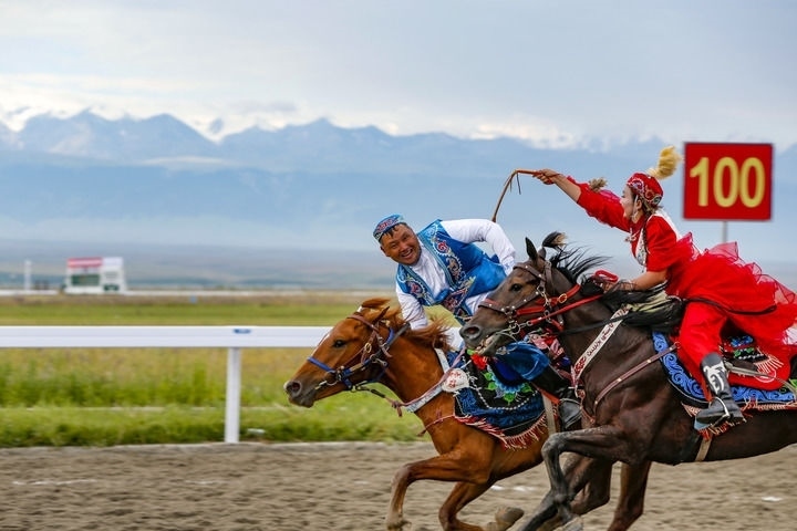 本屆運(yùn)動(dòng)會(huì)的表演項(xiàng)目具有鮮明的地域差異性和民族特色。巍峨雪山、廣袤草原,運(yùn)動(dòng)會(huì)馬上項(xiàng)目的比賽于今年7月在新疆維吾爾自治區(qū)昭蘇縣舉行。其中,“姑娘追”作為表演項(xiàng)目給人留下深刻印象?!肮媚镒贰痹仁枪_克族男女青年的一種戀愛方式,即姑娘騎馬追上心愛的青年,用皮鞭輕輕抽打他,來表達(dá)愛意?,F(xiàn)如今,在各民族文化的互鑒融通中,“姑娘追”已成為一項(xiàng)饒有風(fēng)趣的群眾性體育活動(dòng),不斷傳承發(fā)展。