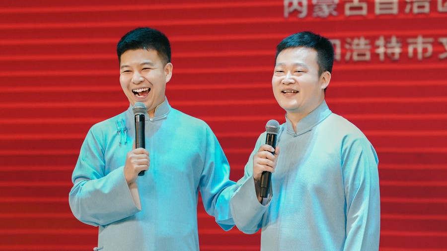 演出在舞步奔放、節(jié)奏明快的群舞《輝煌》中拉開帷幕,文藝志愿者們各展才藝,節(jié)目形式多樣,涵蓋了歌舞、小品、雜技、二人臺(tái)、呼麥等多種藝術(shù)形式。相聲《開心一刻》幽默詼諧,演員妙語連珠,引得觀眾笑聲不斷;小品《一路風(fēng)情走青城》聚焦日常點(diǎn)滴,用接地氣的故事展現(xiàn)呼市新風(fēng)貌,讓人倍感親切;歌曲《請(qǐng)到草原來》《歌在飛》《歌游內(nèi)蒙古》,文藝志愿者們用嘹亮歌聲傳遞對(duì)家鄉(xiāng)、對(duì)祖國的熱愛;二人臺(tái)對(duì)唱《掛起紅燈拜新年》、呼麥《馬群贊》飽含深情;藝體表演《武動(dòng)乾坤》、雜技《鍋碗瓢盆交響曲》創(chuàng)意十足,現(xiàn)場(chǎng)驚嘆聲此起彼伏;獨(dú)舞《雄鷹》以剛勁的肢體語言,詮釋鷹擊長(zhǎng)空磅礴氣勢(shì);《舞蹈美草》用輕盈的舞步展現(xiàn)原野的律動(dòng);最后,全體演員與觀眾齊聲合唱《我的祖國》,將演出推向最高潮。精彩的表演贏得了現(xiàn)場(chǎng)400多名觀眾的陣陣掌聲和歡呼聲,氣氛熱烈非凡。