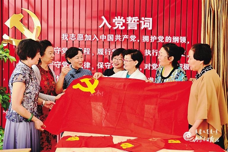 6月30日,呼和浩特市玉泉區(qū)五塔北街社區(qū)老黨員們正在一針一線繡黨旗。當日,該社區(qū)舉行了“繡黨旗 迎七一”獻禮活動,老黨員、新黨員和志愿者一起繡黨旗、頌黨恩,抒發(fā)對黨的熱愛之情。(內(nèi)蒙古日報記者 安寅東 攝)