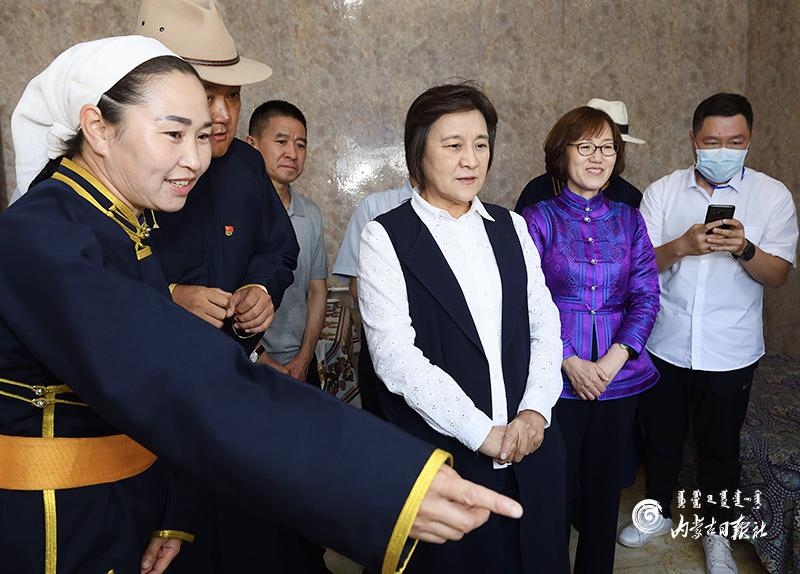 自治區(qū)黨委副書記、自治區(qū)主席布小林來到呼倫貝爾市新巴爾虎右旗芒來嘎查牧戶滿達家,了解智慧牧場等設(shè)備使用情況。內(nèi)蒙古日報記者 金泉 攝