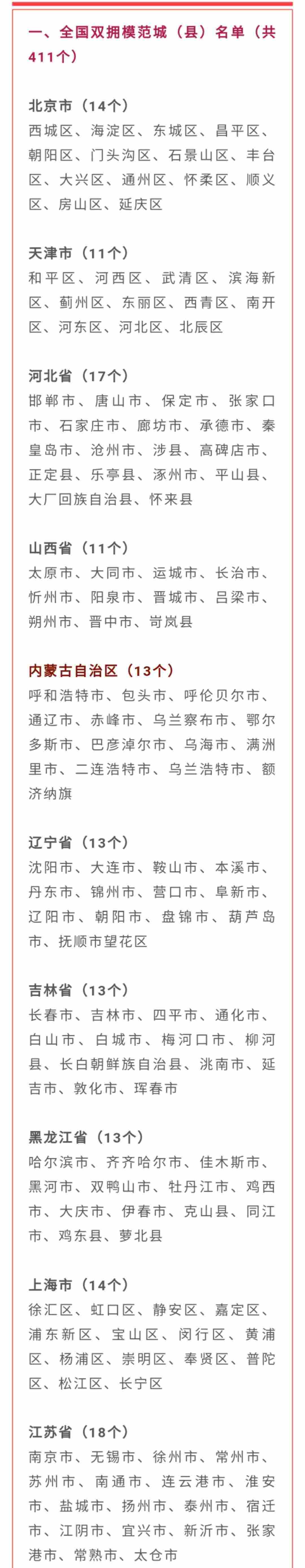 10月20日,全國雙擁模范城(縣)命名暨雙擁模范單位和個人表彰大會在北京舉行,大會宣讀了關(guān)于命名411個全國雙擁模范城(縣),關(guān)于表彰全國愛國擁軍模范單位和擁政愛民模范單位,關(guān)于表彰全國愛國擁軍模范和擁政愛民模范的決定。內(nèi)蒙古自治區(qū)13個市縣(旗)榮膺全國雙擁模范城(縣),1個鎮(zhèn)、2名全國愛國擁軍模范受到表彰。全部名單如下: