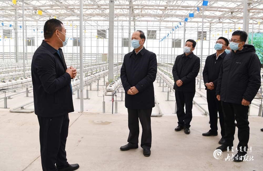 3月16日,自治區(qū)黨委書記、人大常委會主任石泰峰來到巴彥淖爾市臨河區(qū)鮮農(nóng)農(nóng)業(yè)科技園區(qū),走進智能聯(lián)棟溫室,了解現(xiàn)代農(nóng)業(yè)運營情況。內(nèi)蒙古日報社融媒體記者袁永紅攝
