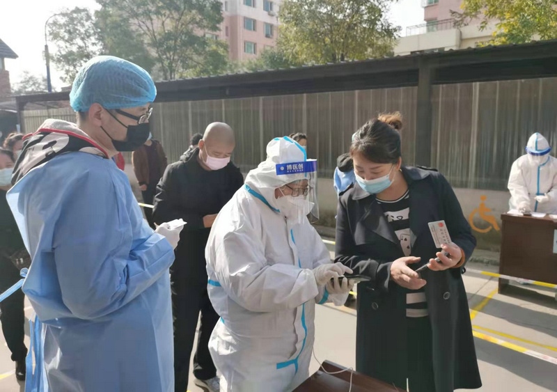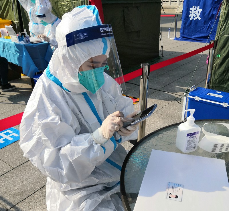 “昨天分配的任務是信息采集,因為第二輪核酸檢測要使用新的采集系統(tǒng),所以今天早晨7:00到崗后,大家開始學習信息采集系統(tǒng)的使用。信息采集不能出任何差錯,每一個信息采集員都很緊張,謹慎操作每一步?!痹诤艉秃铺厥杏袢獏^(qū)大召社區(qū)核酸檢測點參加志愿服務的張華媛說,8:00準時開始第二次核酸檢測,直到下午2:00換崗,連續(xù)6小時緊張謹慎的信息采集,中途沒有休息過,整個身體感覺有點僵了。雖然很累,但是能成為抗疫戰(zhàn)士中的一員,和醫(yī)護人員、社區(qū)工作者及其他志愿者一起為呼和浩特抗疫貢獻自己的一份力,是一件非常有意義的事。