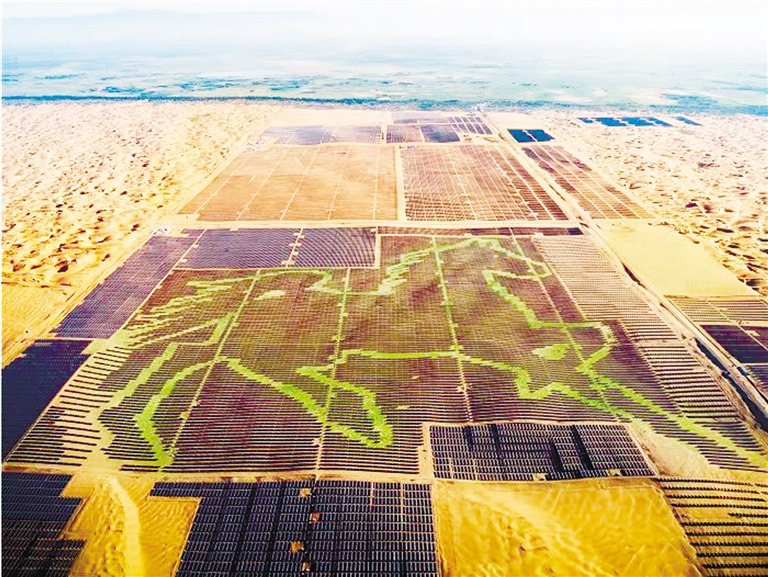 駿馬奔騰似潮涌,一日千里獨行空。庫布其沙漠腹地,由196320塊藍色光伏板組成的駿馬圖栩栩如生,格外吸睛。內蒙古現(xiàn)代能源經(jīng)濟,一如這昂首奔騰的駿馬,向著“雙碳”目標奮蹄疾馳。(記者 許曉嵐 康麗娜)
