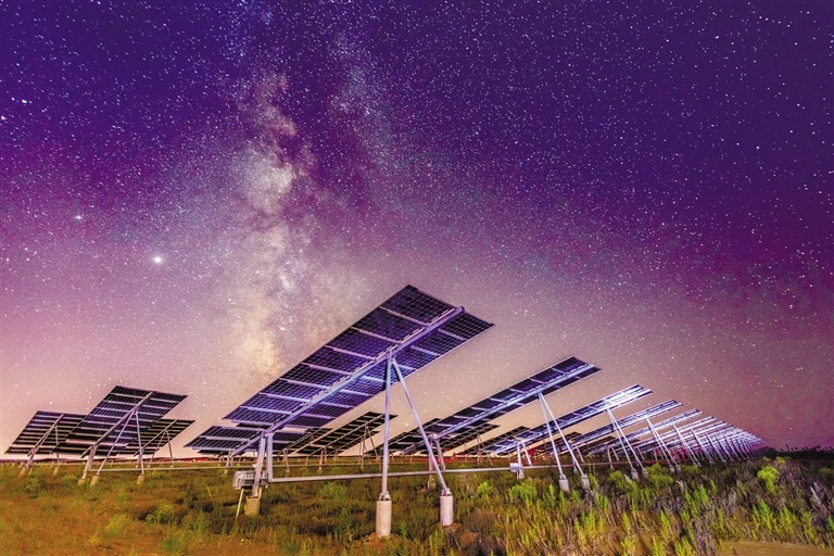 星空下的光伏電站。孟和朝魯 攝