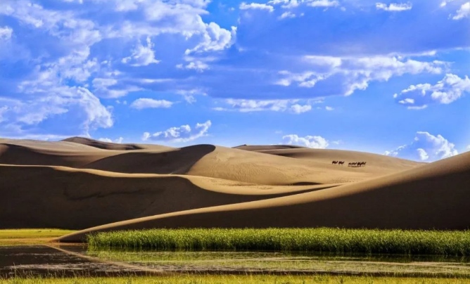 沙海披綠裝,荒漠變綠洲。