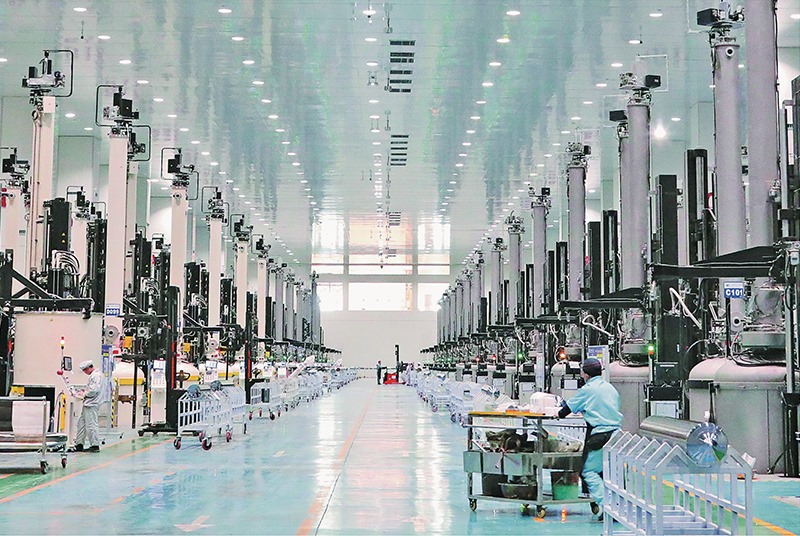 內(nèi)蒙古與時(shí)俱進(jìn)優(yōu)化能源資源開(kāi)發(fā)利用方式,推動(dòng)由化石能源大區(qū)向清潔能源大區(qū)轉(zhuǎn)變。圖為位于包頭市的雙良光伏產(chǎn)業(yè)園單晶硅生產(chǎn)車(chē)間(2022年10月20日攝)。
