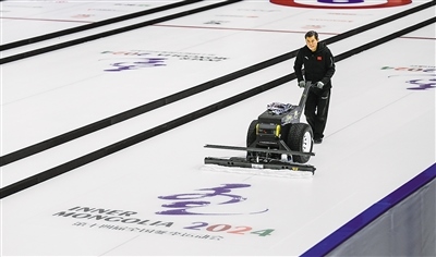 12月7日,走進(jìn)位于呼倫貝爾市海拉爾區(qū)的內(nèi)蒙古自治區(qū)冰上運(yùn)動(dòng)訓(xùn)練中心冰球冰壺館,只見制冰師正在一遍又一遍地修整冰面,為即將到來(lái)的“十四冬”冰壺項(xiàng)目青年組比賽做準(zhǔn)備。