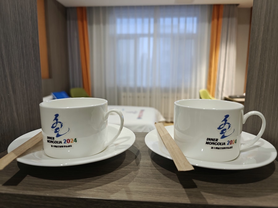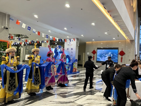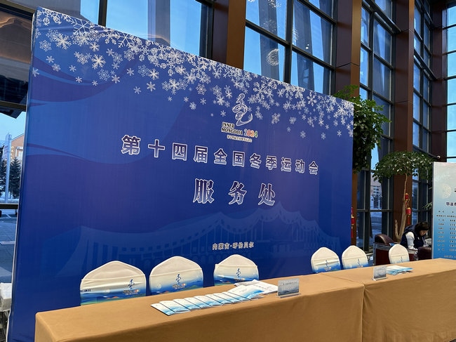 劉欣說:“‘十四冬’期間,酒店接待服務站將實行24小時值班制度,為入住酒店的賓客提供醫(yī)療衛(wèi)生、交通保障等服務。同時,我們還在一樓大堂設(shè)置了‘十四冬’文創(chuàng)商場,商場內(nèi)展示有‘十四冬’文創(chuàng)產(chǎn)品及皮畫、太陽花等呼倫貝爾的非遺產(chǎn)品。”