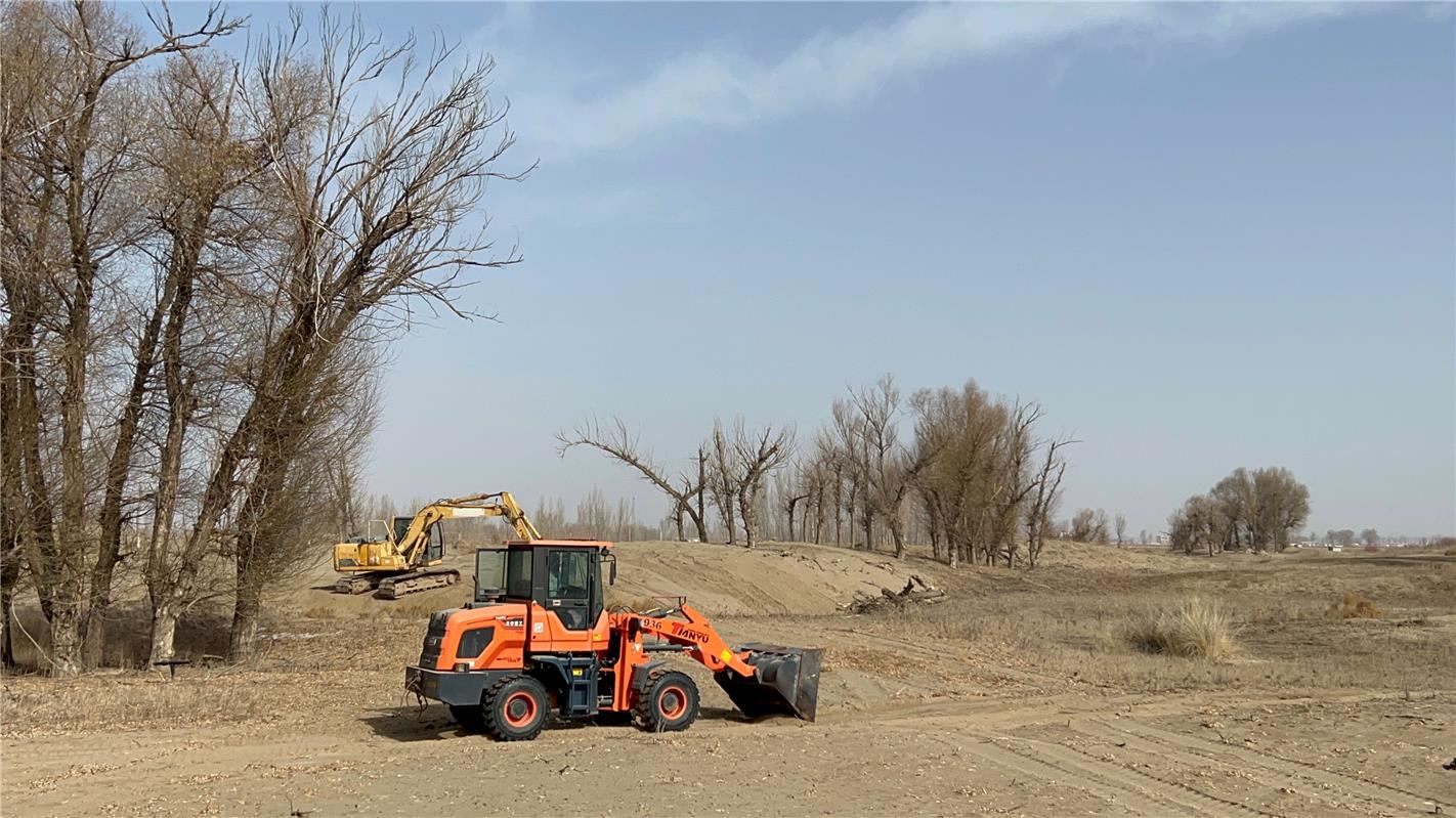 2月28日,春意萌動,萬物生長。進入巴彥淖爾市臨河區(qū)國營新華林場,一幅紅彤彤的對聯(lián)——“生態(tài)優(yōu)先綠色發(fā)展勇?lián)姑晃菲D難”映入眼簾,與兩旁高高掛起的紅燈籠相映成趣。另一邊,數(shù)臺大型機械往來穿梭,開始了今年的植綠工作。