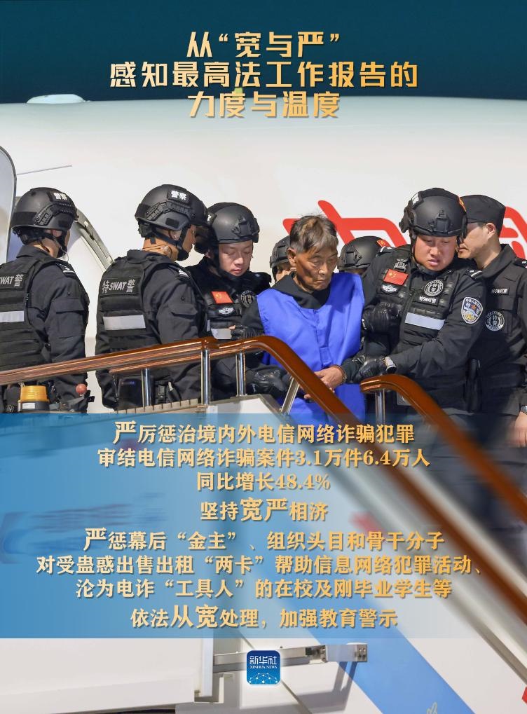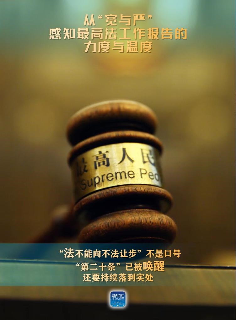 新華社北京3月9日電(記者高潔、馬知遙、袁秋岳)3月8日,最高人民法院工作報告提請十四屆全國人大二次會議審議。報告中列舉了不少案例,有的案件從嚴從重判決,有的從寬或無罪判決。讓我們從“寬與嚴”感知報告的力度與溫度。