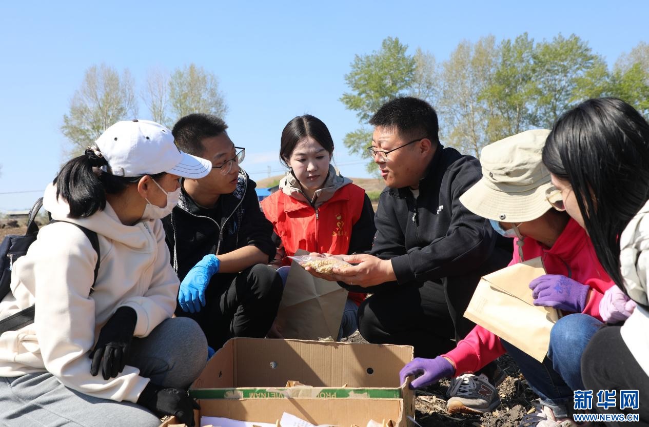 ??5月7日,在內(nèi)蒙古自治區(qū)扎蘭屯大豆科技小院,內(nèi)蒙古農(nóng)業(yè)大學(xué)研究生在大河灣鎮(zhèn)尖山子村試驗(yàn)田播種大豆。新華網(wǎng)發(fā)(韓冷 攝)