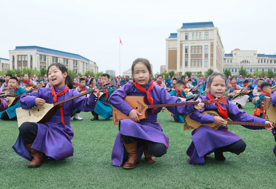 “今天參加4個‘千人文化’特色課程感到非常高興和開心。這4個課程讓我們的文化素養(yǎng)得到質(zhì)的提升,愉悅了身心?!蔽迥昙?25班的哈斯寶勒爾剛剛參加完特色課程展示。哈斯寶勒爾表示,這4個課程,比如玩象棋的話,可以提升自己的思維邏輯,讓自己的思路更加清晰,能夠提升學習成績;練習筷子舞,可以讓我們的心情變得更加愉悅,通過練習跳舞,讓我們身體的柔韌性更強;唱江格爾,能鍛煉我們的唱歌能力,還能讓我們把非物質(zhì)文化遺產(chǎn)傳承下去;踢足球可以鍛煉我們的體能。