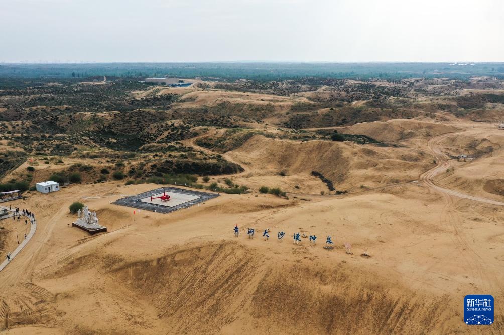 ??這是9月18日拍攝的位于鄂爾多斯市準格爾旗境內(nèi)的庫布其沙漠神泉旅游區(qū)(無人機照片)。