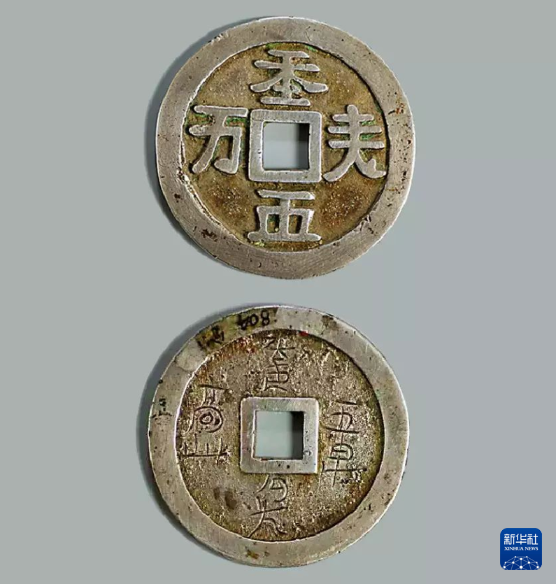經(jīng)考證,這枚銀幣不屬于流通錢,而是一枚祭祀錢、祝頌錢。正面的契丹大字有對讀和左旋讀兩種解釋。錢文釋讀有“天朝萬順”“天朝萬歲”“千秋萬歲”和“天神千萬”等,其中以對讀“天朝萬順”比較得到業(yè)界認可。背面契丹小字目前學(xué)界沒有得出有力的考證。