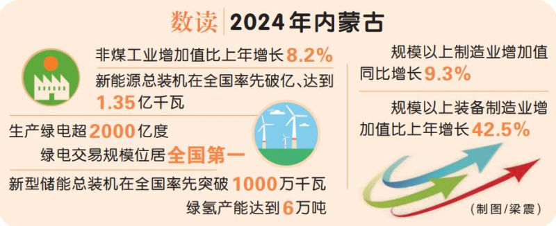 內(nèi)蒙古以新能源全產(chǎn)業(yè)鏈發(fā)展為牽引推進(jìn)產(chǎn)業(yè)結(jié)構(gòu)優(yōu)化升級(jí),下大氣力培育非煤、非資源型產(chǎn)業(yè),以新動(dòng)能促進(jìn)新發(fā)展,2024年,全區(qū)非煤工業(yè)增加值比上年增長(zhǎng)8.2%?! ?/p>