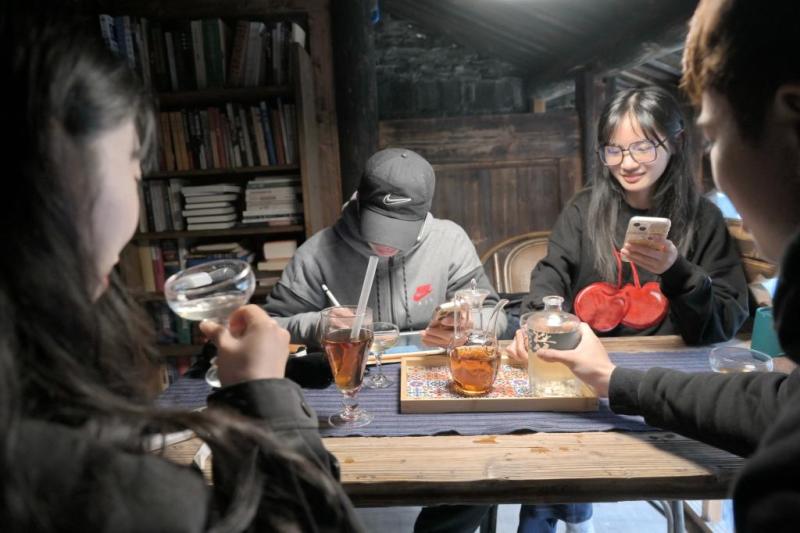 2024年4月9日,年輕消費者在福鼎白琳老街“同順泰”茶號品嘗新式茶飲料。新華社記者 林善傳 攝