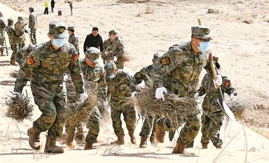 2025年5月6日《中國國防報》第1版刊發(fā)了《內(nèi)蒙古巴彥淖爾軍分區(qū)發(fā)動民兵參與烏蘭布和沙漠治沙攻堅戰(zhàn) 植樹造林戰(zhàn)“黃龍”》的文章,報道了連日來,內(nèi)蒙古巴彥淖爾市民兵到烏蘭布和沙漠植樹造林。為植樹造林鎖住“黃龍”,當(dāng)?shù)剀娒衤?lián)手筑起了一道48公里長的綠色屏障。據(jù)氣象部門數(shù)據(jù)顯示,近年來,當(dāng)?shù)厣硥m暴、干熱風(fēng)、浮塵天氣年平均日數(shù)顯著下降。