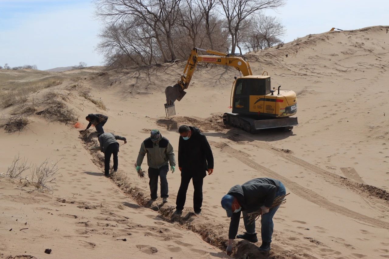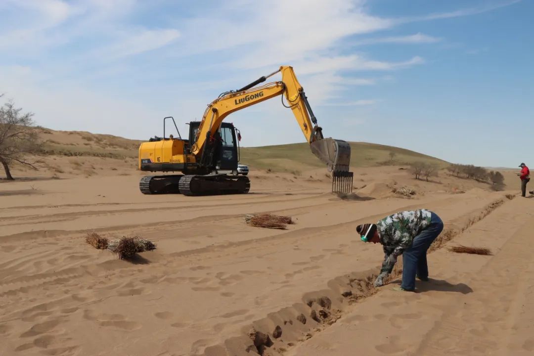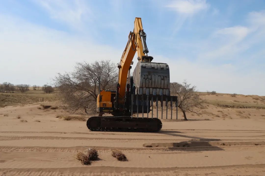 改裝后的挖掘機在治沙工作中展現出了強大的優(yōu)勢。據了解,以往人工種植時,兩個人一天才能完成一畝地的工作量,五個人最多也只能處理兩畝半到三畝地。而如今,改裝后的挖掘機一天的工作量相當于五個人種植十畝地,不僅大大提升了工作效率,還節(jié)約了大量的人力和物力。原本只能用于挖掘作業(yè)的鉤機,經過簡單改裝后,搖身一變成為防塵固沙的“利器”,為沙漠治理工作注入了新的活力。目前,合作社已投入兩臺改裝挖掘機進行作業(yè),并計劃在未來將其數量增加至五臺,以確保按時完成2025年規(guī)劃中8.4萬畝的治理任務。