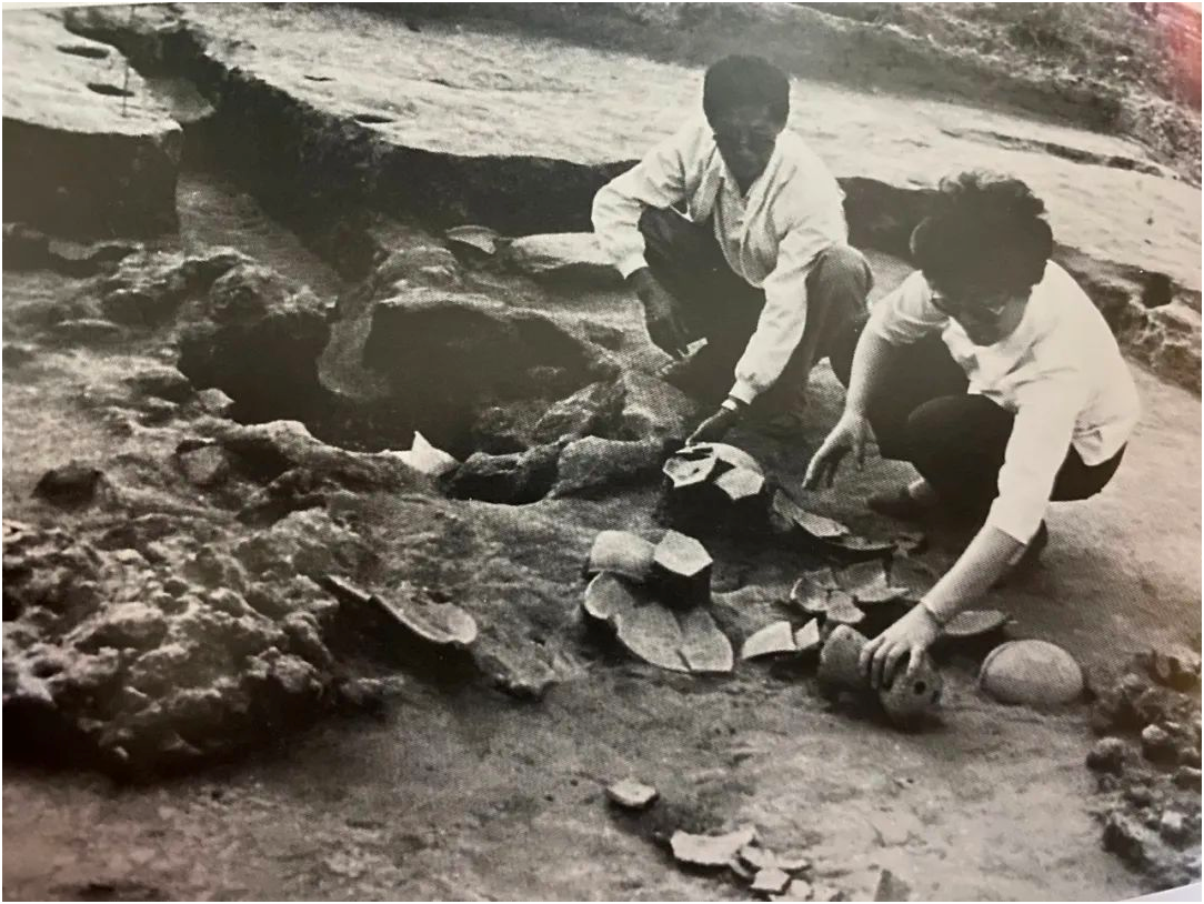 田廣金(左)在岱海遺址群發(fā)掘現場。